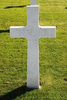 Originally Major Emory was buried in a little courtyard in the demolished town of St. Juvin, a small wooden cross with his name, rank, regiment and date of death marking his resting place. At the time of his death he was just 36 years old. Later his body was moved and re-interred at the Meuse-Argonne American Cemetery and Memorial (also known as the Argonne American Cemetery), along with 14,245 other American comrades from the American Expeditionary Forces (AEF).[27] Most lost their lives during the Meuse-Argonne Offensive, which was the largest battle in American military history, involving 1.2 million American troops and was the principal engagement of the United States in WW 1. It lasted from September 26 to the Armistice with Germany on November 11, 1918.