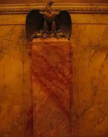 Major Emory's oil portrait hangs in Courtroom 226 of the Clarence M. Mitchell Jr. Courthouse in Baltimore, MD.[28] It was commissioned by his fellow attorneys in the Baltimore Bar Association [29] and executed by the distinguished Baltimore portrait artist Thomas Cromwell Corner (1865–1938), who was schooled both in the United States and Paris, and was a founding member of the Baltimore Museum of Art. Emory's posthumous oil portrait is one of the largest in the Mitchell Courthouse, measuring 50" by 76". It depicts him wearing his Distinguished Service Cross. He is the only lawyer in the courthouse's extensive art collection to be pictured in a military uniform.[30] Thomas C. Corner is the most prolific painter in the courthouse collection, with 20 portraits to his credit.[31] Ironically, twenty years earlier, Corner had painted an oil half-length portrait of the major's grandfather, German H. Hunt.[32] Along with five other Baltimore attorneys who died in World War 1, Emory is also honored with a bronze American eagle sculpture, rendered by the two Mitchell Courthouse architects J.B.Noel Wyatt (1847–1926) and William Nolting (1866–1940). It is mounted on a marble pedestal and located in the Criminal Court Lobby of the Mitchell Courthouse.[33] Of the six Baltimore attorneys who died in World War 1 and honored by this sculpture, Major Emory was the most senior in rank. Another attorney, Lieutenant Merrill Rosenfeld, 115th Infantry, also received the Distinguished Service Cross.