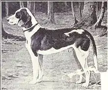 In 1896, the Deutschen Bracken Club, encompassing all of the local types of Bracke in northwest Germany, was formed in Olpe. The breeds were merged in 1900 as one breed and were officially designated Deutsche Bracke.[2] This breed was formerly called by a variety of old regional names such as "Olpe Bracke", "Sauerländer Bracke" and "Westphalian Bracke", and other local types now blended into one breed. The only breeds of Bracke in the area today are the German Hound and the Westphalian Dachsbracke.[1] The Westphalian Dachsbracke is a short-legged dog, possibly a cross of a Bracke with the Dachshund.[3]
