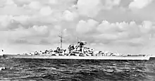 Work on Tirpitz was completed later than anticipated, and she was not commissioned until 25 February; the ship was not ready for combat until late in the year. To further complicate the situation, Gneisenau was torpedoed in Brest and damaged further by bombs when in drydock. Scharnhorst required a boiler overhaul following Operation Berlin; the workers discovered during the overhaul that the boilers were in worse condition than expected. She would also be unavailable for the planned sortie.[26] Attacks by British bombers on supply depots in Kiel delayed repairs to the heavy cruisers Admiral Scheer and Admiral Hipper. The two ships would not be ready for action until July or August.[27] Admiral Günther Lütjens, Flottenchef (Fleet Chief) of the Kriegsmarine, chosen to lead the operation, wished to delay the operation at least until either Scharnhorst or Tirpitz became available,[28] but the OKM decided to proceed with the operation, codenamed Operation Rheinübung, with a force consisting of only Bismarck and the heavy cruiser Prinz Eugen.[26] At a final meeting with Raeder in Paris on 26 April, Lütjens was encouraged by his commander-in-chief to proceed and he eventually decided that an operation should begin as soon as possible to prevent the enemy gaining any respite.[29]