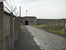 In 1940, the German army had requisitioned a former Belgian army fort at Breendonk and transformed it into an Anhaltelager or prison camp.[86] Initially, the prison camp was used for detaining Jews, but from 1941 most of those detained at Breendonk were political prisoners or captured members of the resistance.[86] Though it was reasonably small, the camp was infamous for its poor conditions and high death rate. It was also where summary executions of hostages as reprisals for resistance actions occurred.[86] Unusually, Breendonk was mainly guarded by Flemish collaborators of the Vlaamse SD-wacht, rather than German soldiers.[87] Prisoners were often tortured, or even mauled by the camp commander's dog, and forced to move tonnes of earth around the fort by hand. Many were summarily executed and still more died as a result of the conditions at the camp. Of the 3,500 people incarcerated in Breendonk between November 1942 and April 1943, around 300 people were killed in the camp itself with at least 84 dying as a result of deprivation or torture.[86] Few inmates remained long in Breendonk itself and were sent on to larger concentration camps in Germany.[86]