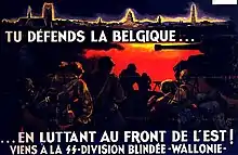 After the war, 53,000 Belgian citizens (0.6 percent of the population) were found guilty of collaboration, providing the only estimate of the number involved during the period.[87] Around 15,000 Belgians served in two separate divisions of the Waffen-SS, divided along linguistic lines.[89] In particular, many Belgians were persuaded to work with the occupiers as a result of long-running hostility to Communism, particularly after the invasion of the Soviet Union in 1941.[82]