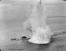 ![]() The U-625 sinking, after being attacked | |
