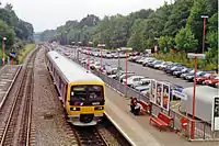 The town has a railway station on the Chiltern Main Line which opened on 2 April 1906. This provides services to London and Birmingham with a commuting time of 18 minutes on the fast train to London Marylebone. A new arch over the section of deep railway cutting to allow Tesco to build a supermarket collapsed on 30 June 2005 at 19:30. Nobody was injured but the line was closed for over six weeks. Compensation by Tesco to Chiltern was reported as £8.5m and the retailer compensated by funding a media campaign to reinstate business immediately lost by the closure. Construction of a correctly constructed arch began in January 2009.[5]