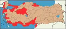 A wave of demonstrations and civil unrest in Turkey began on 28 May 2013, initially to contest the urban development plan for Istanbul's Taksim Gezi Park. The protests were sparked by outrage at the violent eviction of a sit-in at the park protesting the plan.[73] Subsequently, supporting protests and strikes took place across Turkey, protesting a wide range of concerns at the core of which were issues of freedom of the press, expression, and assembly, as well as the Islamist government's erosion of Turkey's secularism. With no centralised leadership beyond the small assembly that organized the original environmental protest, the protests have been compared to the Occupy movement and the May 1968 events. Social media played a key part in the protests, not least because much of the Turkish media downplayed the protests, particularly in the early stages. Three and a half million people (out of Turkey's population of 80 million) are estimated to have taken an active part in almost 5,000 demonstrations across Turkey connected with the original Gezi Park protest.[74] Twenty-two people were killed and more than 8,000 were injured, many critically.[74]