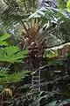 Inside the forests off the shore of Gibney Beach, there is also an abundance of plant life. Gibney Beach lies on the eastern coast of the island and is characterized by dry forest vegetation. Cacti such as the barbed-wire cactus (Acanthocereus tetragonus), prickly pear (Opuntia spp.), organ pipe cactus (Pilosocereus royenii) and Turk's cap cactus (Melocactus intortus) are prominent in the area. These cacti grow alongside shrubs, such as maran (Croton flavens var. rigidula), and thorn bushes like casha (Acacia tortuosa) and catch-and-keep (Acacia retusa). The thorny nature of these forests make them difficult to navigate. Mangrove forests can also be found off Gibney Beach. Mangrove trees alter the shoreline, changing salinity, tidal inundation and oxygenation of the soil. Red mangroves (Rhizophora mangle) are the most common and grow in the ocean. They have specialized prop roots that protect shorelines and serve as nurseries for many marine animals. Other mangrove species that can be found on the coast are the black mangrove (Avicennia germinans), white mangrove (Laguncularia racemosa), and buttonwood mangrove (Conocarpus erectus).[7] Other more exotic trees can be found in residential areas off Gibney Beach. Gardens often include orchids, heliconia, ylang-ylang trees, and fruit trees such as coconut, star fruit, bananas and mango.[8]