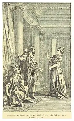 The first modern literary adaptation of the Epic of Gilgamesh was Ishtar and Izdubar (1884) by Leonidas Le Cenci Hamilton, an American lawyer and businessman.[85] Hamilton had rudimentary knowledge of Akkadian, which he had learned from Archibald Sayce's 1872 Assyrian Grammar for Comparative Purposes.[86] Hamilton's book relied heavily on Smith's translation of the Epic of Gilgamesh,[86] but also made major changes.[86] For instance, Hamilton omitted the famous flood story entirely[86] and instead focused on the romantic relationship between Ishtar and Gilgamesh.[86] Ishtar and Izdubar expanded the original roughly 3,000 lines of the Epic of Gilgamesh to roughly 6,000 lines of rhyming couplets grouped into forty-eight cantos.[86] Hamilton significantly altered most of the characters and introduced entirely new episodes not found in the original epic.[86] Significantly influenced by Edward FitzGerald's Rubaiyat of Omar Khayyam and Edwin Arnold's The Light of Asia,[86] Hamilton's characters dress more like nineteenth-century Turks than ancient Babylonians.[87] Hamilton also changed the tone of the epic from the "grim realism" and "ironic tragedy" of the original to a "cheery optimism" filled with "the sweet strains of love and harmony".[88]