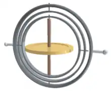 They appear in gyroscopes and in inertial measurement units to allow the inner gimbal's orientation to remain fixed while the outer gimbal suspension assumes any orientation. In compasses and flywheel energy storage mechanisms they allow objects to remain upright. They are used to orient thrusters on rockets.[1]