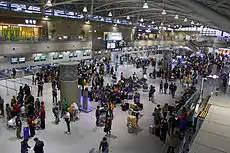 Gimhae International Airport (Korean: 김해국제공항; Hanja: 金海國際空港), commonly known as Gimhae Airport (IATA: PUS, ICAO: RKPK) (formerly Kimhae International Airport) is located on the western end of Busan, South Korea. The name "Gimhae" comes from the nearby city of Gimhae. It opened in 1976. A new international terminal opened on October 31, 2007.[3] Gimhae International Airport is the main hub for Air Busan, Asiana Airlines and Korean Air. Runway 18L/36R is used for military purposes only for Gimhae Air Base, but due to increasing traffic, there are plans to open the runway for airliners. In 2018, 17,064,613 passengers used the airport.