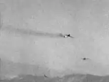 Testing of the Gimlet began in 1954.[7] In the initial test, a FJ-2 Fury shot down a F6F Hellcat target drone, proving the rocket's effectiveness in the air-to-air role.[6] Early launchers carried four rockets, while seven- and 19-round models were developed as well.[8] A six-round clip capable of fitting the internal rocket bays of the F4D Skyray interceptor was also developed.[8]