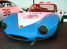 The G4 used the new Ford 105E engine and had a glass fibre GT-style body along with the suspension updated to coil springing at the front with a Ford live axle at the rear. Whereas the G2 and G3 had been designed for racing, the G4 was usable as an everyday car but still was very competitive in motorsport with numerous successes. In 1963, a coupé variant was introduced alongside the open-top variant and a BMC axle replaced the Ford unit at the rear.[5] In road tests, the car attains a top speed of 190 km/h (120 mph) with a 1,500 cc engine.[6] The series III version of 1966 added pop-up headlights. Production stopped in 1968 but was revived in 1981 with the Series IV which was 51 mm (2 in) wider and 76 mm (3 in) longer than the III. Over 500 units were made up to 1969 with a variety of Ford engines.