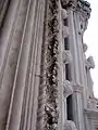 His most beautiful achievement remains the Šibenik Cathedral of St James, for which he was a chief architect from 1441 till 1473.[2] The entire building was built solely of limestone from Istria, with no wood or bricks used in the structure. The building presents all along the perimeter a hedge composed of 72 stone-carved heads. On top of this hedge, and precisely on the North side, Giorgio added two angels; at the base of this work the artist engraved his signature. The task before him was to build the choir, of which foundations had not been laid, to raise and roof the nave which was only completed to the top of the aisle vaults, and to covering the crossing by a lantern or cupola. Unfortuately lack of funding and a fire delayed the achievement of the construction.[8] From 1 July 1477 the work on the Šibenik Cathedral of St James was continued by an architect from Tuscany, Niccolò di Giovanni Fiorentino.