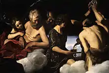 Gianni Papi says that Galli's "most typical and strikingly modern feature is that of human fragility and vulnerability", and that this sets his work apart from that of other Caravaggists.[3] Of the Narcissus (Rome, Palazzo Barberini), which has been attributed variously to Caravaggio, Orazio Gentileschi, Bartolomeo Manfredi, and Galli,[4] Elisabetta Giffi Ponzi says "the quality of lighting, the silky effects of the sleeves and elegiac tone of the work are typical of Spadarino’s style."[1] Ponzi says that Galli's later works, such as the Palazzo Madama frescoes, show a stylistic decline resulting from his ambivalence toward new trends in Roman art.[1]