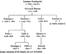Giovanni Battista Guadagnini (often shortened to G. B. Guadagnini; 23 June 1711 – 18 September 1786) was an Italian luthier, regarded as one of the finest craftsmen of string instruments in history.[3] He is widely considered the third greatest maker after Antonio Stradivari and Giuseppe Guarneri "del Gesù". The Guadagnini family was known for their violins, guitars and mandolins.[1]