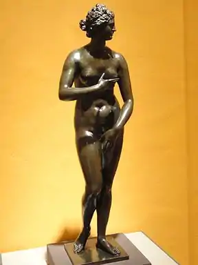 Susini was born in Florence, and trained in the workshop of Giambologna. He continued to work in Giambologna's style, and Susini's sculpture was already mistaken for that of his master by the end of the century.[2] His uncle, Antonio Susini, was the principal bronze-caster of Giambologna, and the young Francesco received early training as a junior member of Giambologna's workshop. A trip to Rome in 1624-26 gave him first-hand experience of classical antique, 16th century, and the emerging Baroque statuary, latter exemplified by Bernini's youthful Apollo and Daphne, but his own Mannerist style was already matured. He made wax copies of the recently discovered Borghese Hermaphroditus for casting upon his return to Florence.[3] His bronze reduction of the Laocoön [4] is likely based on the copy of it in Florence.