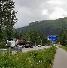 Alyeska Highway and sign indicating the post-1964 town site
