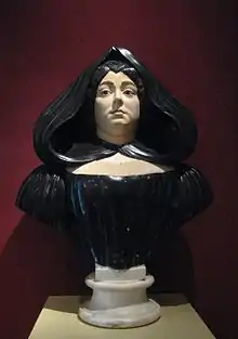 Giuseppe Antonio Torricelli (1662–1719) was an Italian sculptor and gem-engraver of the late Baroque active in Florence, often using colorful and semi-precious pietra dura, a type of workmanship that became a specialty of Florence. He initially trained with Gaetano Giulio Zumbo. During his lifetime, worked under the supervision of Giovanni Battista Foggini, the master sculptor of the duchy. His masterpiece is the elaborate bust of Vittoria della Rovere (made from chalcedony (face), sardonyx (pupils), Sicilian jasper (lips), and black touchstone (bodice and veil). This project alone took nearly two decades to complete (1696–1713). It ultimately lacks the majesty of marble, and has the appearance of a wax museum portrait. It is found presently in Museo degli Argenti in Florence.