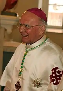 On 28 June 2001, Pope John Paul II appointed him titular archbishop of Anzio and apostolic nuncio to Kuwait, Bahrain, and Yemen,[3] as well as Apostolic Delegate to the Arabian Peninsula.[6] On 29 November 2003 he was given additional responsibility as Apostolic Nuncio to Qatar.[7] His diplomatic career ended when he was replaced in these positions by Paul-Mounged El-Hachem on 27 August 2005.[8]