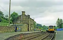 Glaisdale railway station serves the village of Glaisdale in North Yorkshire, England. It is located on the Esk Valley Line and is operated by Northern Trains who provide most of the station's passenger services. The NYMR use this station on gala days, when they run trains along the line as far as Battersby. The station dates from October 1865, when the Castleton to Grosmont line was opened.[1] The signal box was moved northwards in June 1902 to allow the platform to be extended towards the west;engineers simply raised the box onto rails and slid the box into its new position.[2]