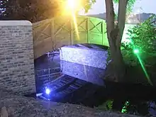 During 2010 Michael Eavis received a donation from British Waterways of timber from the old gates at Caen Hill Locks in Wiltshire. This was used to construct a new bridge which was dedicated to the memory of Arabella Churchill.[118] The following year more of the redundant lock gates were used to build the Campo Pequeno amphitheatre.[119][120]