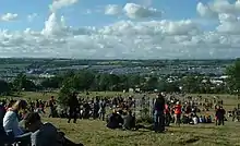 The festival takes place in South West England at Worthy Farm between the small villages of Pilton and Pylle in Somerset, six miles east of Glastonbury, overlooked by the Glastonbury Tor in the "Vale of Avalon".[171] The area has a number of legends and spiritual traditions, and is a "New Age" site of interest: ley lines are considered to converge on the Tor.[172] The nearest town to the festival site is Shepton Mallet, three miles (5 km) north east, but there continues to be interaction between the people espousing alternative lifestyles living in Glastonbury and the festival. The farm is situated between the A361 and A37 roads.