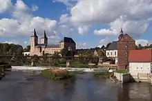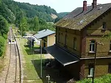 The Glauchau–Wurzen railway is a secondary railway line in Saxony. It follows the valleys of Zwickauer Mulde and Mulde from Glauchau via Rochlitz and Grimma to Wurzen and is hence also known as Muldentalbahn (Mulde valley railway). Regular traffic on the line ended in the early 2000s. The section between Glauchau and Großbothen has been leased by Deutsche Regionaleisenbahn since 2005 and has been protected as a cultural monument since 2016,[2] the remainder has been decommissioned.