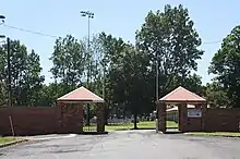 A picket fence was once installed in front of the grandstand but is now removed.