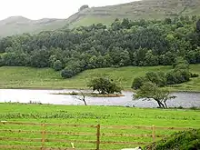 Glencar Lough (Irish: Loch Ghleann an Chairthe, meaning "lake of the glen of the pillar stone"),[4][5] locally known as Glencar Lake, is a freshwater lake in the northwest of Ireland. It covers an area of 1.15 square kilometres (284.2 acres) and lies mostly in County Leitrim with a smaller part in County Sligo. Glencar Waterfall is located near the lake's north shore on the Leitrim side.