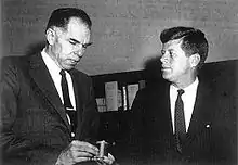 After appointment by President John F. Kennedy and confirmation by the United States Senate, Seaborg was chairman of the Atomic Energy Commission (AEC) from 1961 to 1971. His pending appointment by President-elect Kennedy was nearly derailed in late 1960 when members of the Kennedy transition team learned that Seaborg had been listed in a U.S. News & World Report article as a member of "Nixon's Idea Men". Seaborg said that as a lifetime Democrat he was baffled when the article appeared associating him with outgoing Vice President Richard Nixon, a Republican whom Seaborg considered a casual acquaintance.[34]