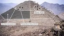 Comparability, simplicity and economy were the main considerations in designing GLORIA's standard recording design and method (Multi-Summit Approach), in order to build a world-wide network of operable sites. In each study region (target region) a suite of four monitoring locations in summit areas at different altitudes represents an elevation gradient from the treeline ecotone to the upper limits of plant life. At each location, vascular plant species and abundances are to be recorded in standardized permanent plots of different size at intervals of 5 to 10 years, along with continuous measurements of soil temperature.[2] Several supplementary approaches, e.g., focusing on other organism groups, soil ecology or on socio-ecological features, are applied or are under development in some study regions. The network consists of dedicated ecologists and biologists from over hundred research institutions and many protected area authorities, distributed over six continents and it cooperates with other international efforts such as the Global Mountain Biodiversity Assessment of the Future Earth programme and the LTSER network. GLORIA's head office and central data base is affiliated to at the Austrian Academy of Sciences (Institute for Interdisciplinary Mountain Research) and the University of Natural Resources and Life Sciences Vienna (Center for Global Change and Sustainability), Austria.