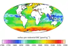 ![]() Surface ocean pre-industrial DIC concentration, GLODAPv2 |