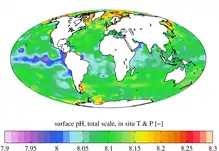 ![]() Surface ocean present-day pH, GLODAPv2 |