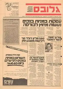 Globes (Hebrew: גלובס) is a Hebrew-language daily evening financial newspaper and has been the oldest and largest of its kind in Israel. Globes was founded in the early 1980s and published in Tel Aviv, Israel. It deals with economic issues and news from the Israeli and international business worlds. The color of the paper is pink, inspired by the British Financial Times.