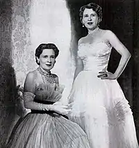 Known as "The Magnificent Morgans", Gloria and Thelma Morgan were popular society fixtures, even as teenagers. British photographer Cecil Beaton described them as "alike as two magnolias, and with their marble complexions, raven tresses, and flowing dresses, with their slight lisps and foreign accents, they diffuse a Ouida atmosphere of hothouse elegance and lacy femininity. ... Their noses are like begonias, with full-blown nostrils, their lips richly carved, and they should have been painted by Sargent, with arrogant heads and affected hands, in white satin with a bowl of white peonies near by."[13]