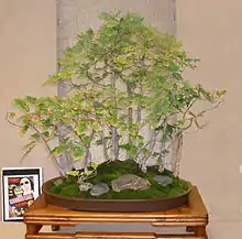 In the late 1960s, Stuart embraced another art form, the art of bonsai. She took classes from Frank Nagata, colleague of John Naka, a bonsai master in Los Angeles,[99] joined Nagata's bonsai club, Baiko-En, and became one of the first Anglo members of the California Bonsai Society. Eventually Stuart's collection numbered over one hundred miniature trees.[100]