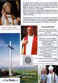 The Friends of the Glorious Cross of Dozulé (in French: Amis de la Croix Glorieuse de Dozulé) is a Christian movement founded in the 1980s in the Calvados département, France. It is based on the reported private revelations received by Madeleine Aumount in Dozulé in the 1970s, but sustained on several "new messages" received by an alleged mystic, self-styled JNSR,[5] that confirmed as true the Madeleine's messages. However, JNSR predicted the end of the world, preceding by many catastrophes, and published a new «Message of Dozulé» which contains the doctrine of this group. In 1995, this group (totally separated from the original Dozulé apparitions) was considered as a cult in the 1995 parliamentary report on cults,[6] and by anti-cult associations (ADFI, CCMM), notably because of its apocalypticism.[7]