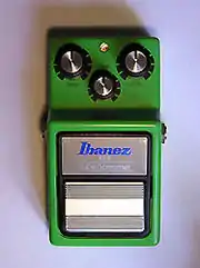 - A guitar effect unit mounted in a rocking treadle which, when moved up and down with the foot, applies a frequency filter that mimics some aspects of the human voice. May also be used with keyboards, electric violin, or other instruments. Very popular in the 1970s.