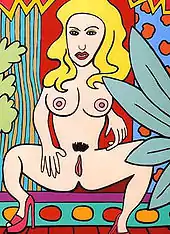 Thomson was also accused of revenge for exhibiting two paintings of strippers, which he said were based on his ex-wife and one-time stripper, Stella Vine. She was briefly a member of the Stuckists group at the time of their marriage in 2001, but has since attracted solo attention. Rivalry increased when her work was promoted by Charles Saatchi in 2004.[1] Thomson denied any intention of vengeance with the paintings and said that "I would prefer her to enjoy these, as I still enjoy her art".[9]
