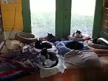 As a nonprofit shelter, the Refuge is run mainly by volunteers. There are two shifts of at least two volunteers each who look after the cats and socialize them to be ready for adoption.[6] In its first five years the refuge has found homes for over 900 cats.[7] No cats are rejected or subjected to euthanasia unless past all hope of recovery. Unadoptable cats may live out their lives on the property as well.[2]