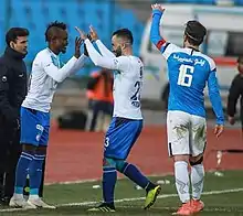 Mensha made his debut for the club on 7 February, in a 4–0 win against Paykan, as a 72nd-minute substitute for Dariush Shojaeian, assisting the third goal by Esmaël Gonçalves.[14] On 28 February, in an away match against Foolad, he attacked an opponent fan after the fan pulled his hair while he was entering the stadium.[15] During the match, he scored his first goal for his new club as well as providing an assist for the winner in the 3–1 away victory against Foolad. His goal came from Farshid Bagheri's pass from behind the halfway line, which he volleyed the ball past the keeper.[16] Two days later, he was banned from all domestic football activities until further notice, due to the incident he had before the match.[17] However, the ban was lifted a few days later after clarifying the incident for the FFIRI.[18] On 5 May, with the arrival of new coach Farhad Majidi, he was excluded from training with the first-team due to his bad behaviour after he realised he is not a starter in the previous game against Padideh.[19]