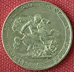 The Golden Cavalry of St George was the colloquial name of subsidies paid out by the British government to other states in Europe in the 18th and the 19th centuries, particularly during the Napoleonic Wars.[1] The name is a euphemism and derives from the British sovereign gold coins often used in those payments, which bore an image of Saint George, the patron saint of England, on horseback slaying the dragon.[2]