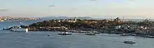 The entrance to the Golden Horn and Seraglio Point (at the very tip of the Historic Peninsula, at far left), as seen from Galata Tower, 2006.