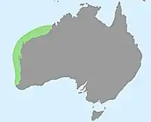Golden ghost crabs are endemic to the coast of Western Australia,[24] from Broome to Perth.[1] They are one of five ghost crab species found in the Western Australian coast, the others being Ocypode ceratophthalma, Ocypode cordimanus, Ocypode fabricii, and Ocypode pallidula. Among these, Ocypode fabricii is also endemic to Australia (from Darwin to Shark Bay).[1]