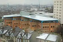 The Professor Stuart Hall Building (formerly the New Academic Building), situated next to the green, is home to the Media and Communications Department and the Institute for Creative and Cultural Entrepreneurship (ICCE).[9] Facilities include a 250-seat lecture theatre, seminar and teaching rooms, as well as a cafe with outdoor seating.