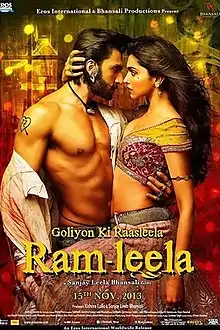 Goliyon Ki Raasleela Ram-Leela (transl. A Dance of Bullets: Ram-Leela) is a 2013 Indian Hindi-language tragic romance film written and directed by Sanjay Leela Bhansali, who also composed its original soundtrack. The film was jointly produced by Bhansali and Eros International's Kishore Lulla; it stars Deepika Padukone and Ranveer Singh. The supporting cast includes Supriya Pathak, Richa Chadda, Sharad Kelkar, Gulshan Devaiah, Barkha Bisht Sengupta, and Abhimanyu Singh. Priyanka Chopra made a cameo appearance in the song "Ram Chahe Leela".