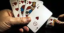 Goofspiel (also known as The Game of Pure Strategy, GOPS or Psychological Jujitsu[1]) is a card game for two or more players. It was invented by Merrill Flood while at Princeton University in the 1930s,[2] and Alex Randolph describes a similar game as having been popular with the 5th Indian Army during the Second World War.[3]