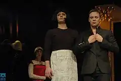 He further rose to continental prominence as homosexual activist Mirko Dedijer, in the 2011 Festroia Award-winning film The Parade.[14] The film by Srđan Dragojević reached commercial success, despite the controversial subject, and critics praised Jevtić's portrayal.[15] Other than his role in The Parade, he actively appeared in the We're Not Angels films as fictional Leskovac native Andreja and played the supporting role of Mitar in the 2011 American war film In the Land of Blood and Honey directed by Angelina Jolie. He won the Apolon Prize in Belgrade for his role as Miloš in Life Is a Miracle entered into the 2004 Cannes Film Festival.[16] He starred as Dane in the Srđan Dragojević production Sveti Georgije ubija aždahu in 2008, and in Na lijepom plavom Dunavu in 2009 as Jacek.[17]