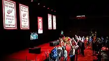 Howe was named an Officer of the Order of Canada in 1971.[26][27] His number 9 jersey was retired by the Red Wings on March 12, 1972.[28]