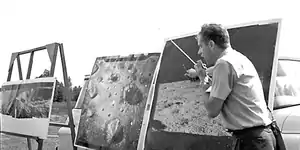 Gordon Swann giving briefing for Lunar Roving Vehicle demonstration at Cinder Lake Crater Field, near Flagstaff, Arizona, in about 1970