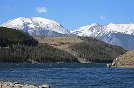 ![]() The southern end of the Gore Range seen from Dillon Reservoir. | |